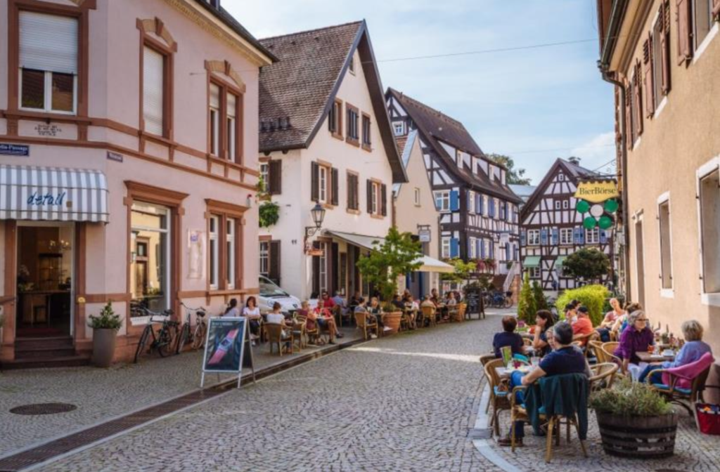 A typical scene in a town in the Elztal Region with cobbled streets and just look at the architecture!